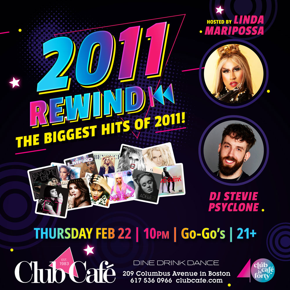 Have you ever wished you were in the clubs in another year? Maybe you want to return to a simpler time. Maybe you weren’t old enough to go clubbing. We bring you REWIND: 2011