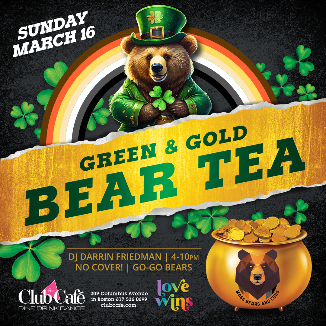 GREEM & GOLD BEAR TEA – Club Café welcomes the Bear and Otter community on the 3rd Sunday every month. Music by DJ DARRIN FRIEDMAN. No Cover. GO-GO Bears