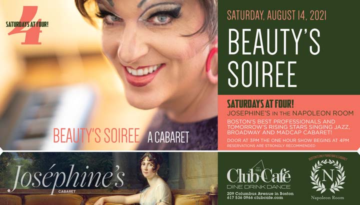 JOSEPHINE’S in the NAPOLEON ROOM – Boston’s best professionals and tomorrow’s rising stars singing JAZZ, BROADWAY & MADCAP CABARET! Door at 3:00pm pm and the one hour show begins at 4:00 pm. RESERVATIONS strongly recommended.