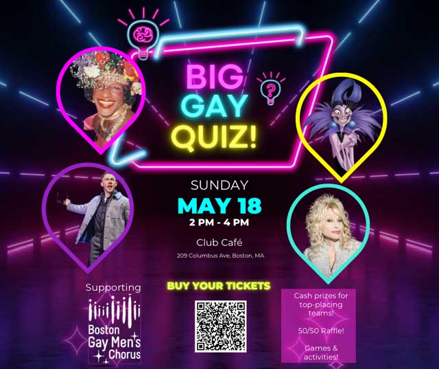 Big Gay Quiz: Fundraiser for the Boston Gay Men’s Chorus – Show off your big gay brain, support one of Boston’s longest-running queer organizations, and maybe win some serious cash!