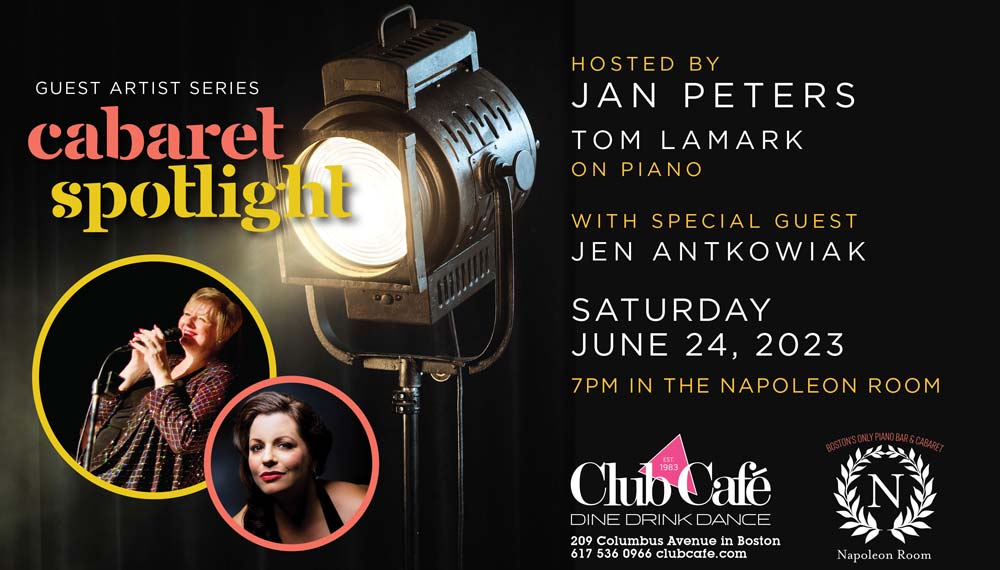 CABARET SPOTLIGHT hosted by JAN PETERS with special guest JEN ANTKOWIAK and TOM LAMARK on piano.