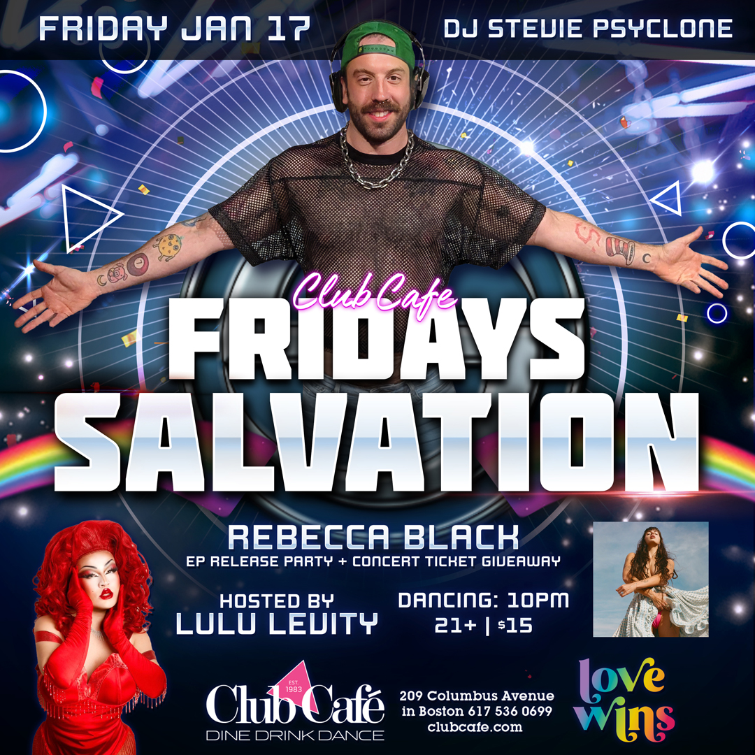 SALVATION – Rebecca Black EP release party & concert ticket giveaway! Hosted by LULU LEVITY! Join us at Club Café as we kick off the weekend with DJ STEVIE PSYCLONE.