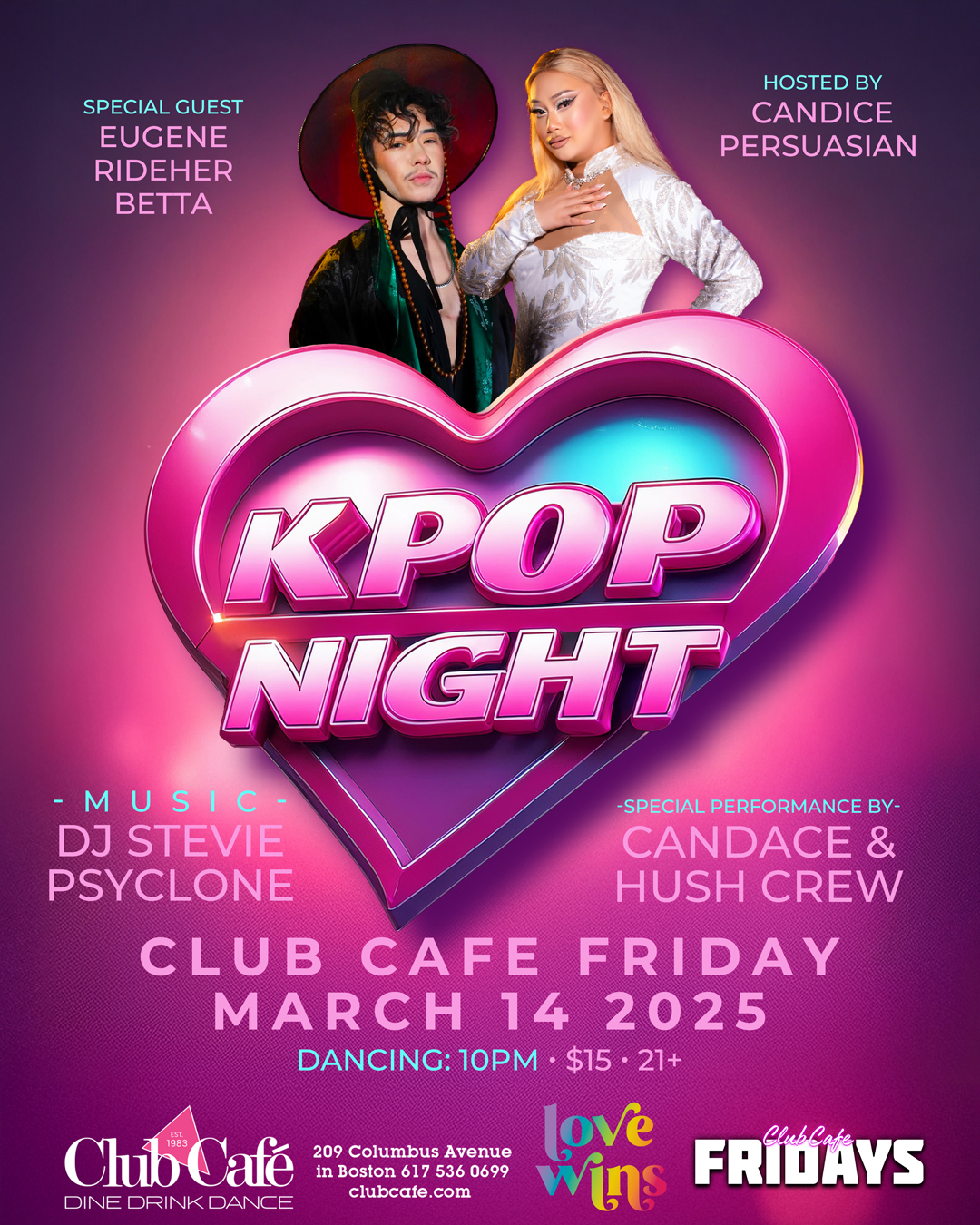 KPOP NIGHT – Special performance by Candace & Hush Crew. Join us every Friday Night at Club Café as we kick off the weekend with DJ STEVIE PSYCLONE playing pop, r&b, hip hop, latin, k-pop, remix and throw-backs. 21+ – $15 after 10pm
