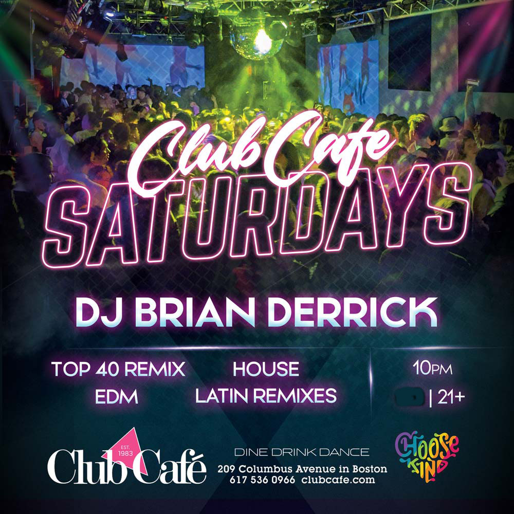 CLUB CAFÉ SATURDAY– DJ Brian Derrick. $15 cover after 10pm in support of ACLU!