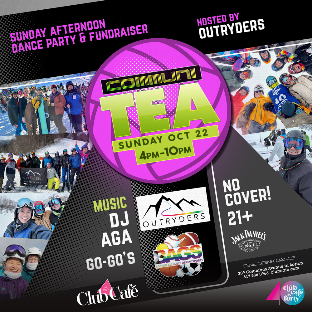 COMMUNI-TEA DANCE with DJ AGA – A Sunday Afternoon Dance Party, Hosted by OUTRYDERS – 4pm-10pm. No Cover go-go’s – 21+