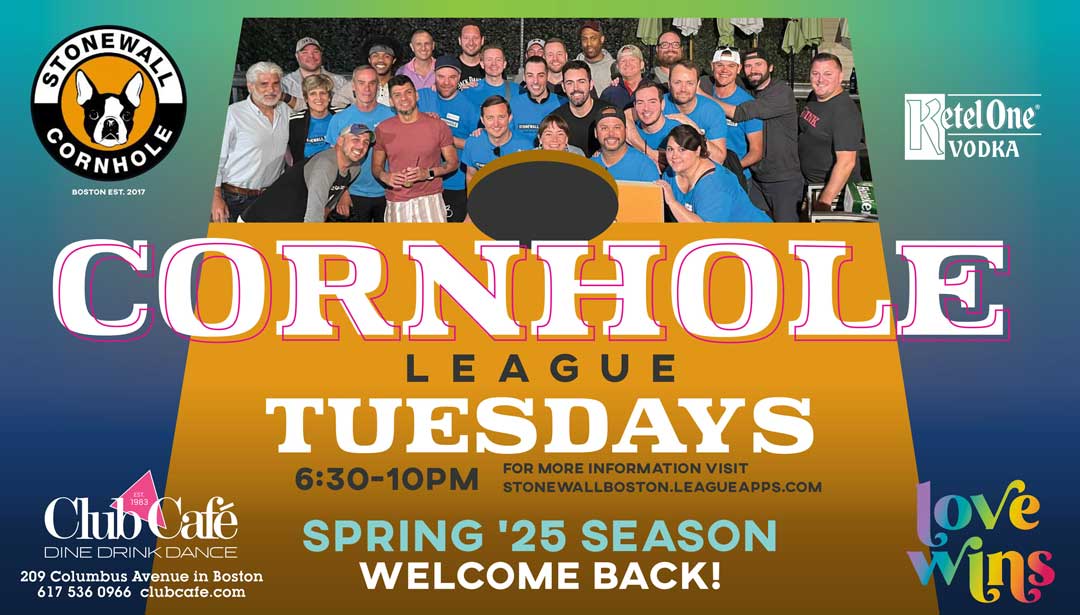 Home Events Cornhole League Cornhole League reservationsDine With Us. CORNHOLE LEAGUE SPRING 2025 Tuesdays Date Mar 11 2025 Expired! Time 6:30 pm - 10:00 pm Location Moonshine Room 209 Columbus Avenue, Boston, MA 02116 Website https://www.clubcafe.com/ Category Featured Nightclub Feature