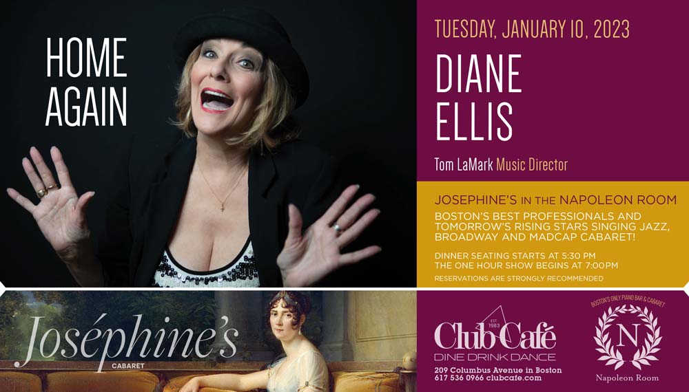 JOSEPHINE’S in the NAPOLEON ROOM – Boston’s best professionals and tomorrow’s rising stars singing JAZZ, BROADWAY & MADCAP CABARET! Dinner seating starts at 5:30 pm and the one hour show begins at 7:00 pm. RESERVATIONS strongly recommended.