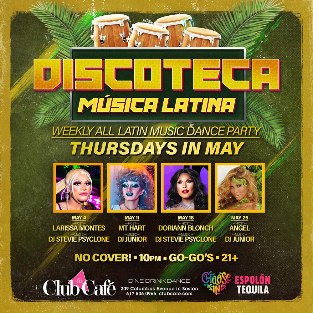 Weekly All Latin Music Dance Party. – No Cover! Go-Go’s 21+ – Thursdays in May with DJ Junior and DJ Stevie Psyclone