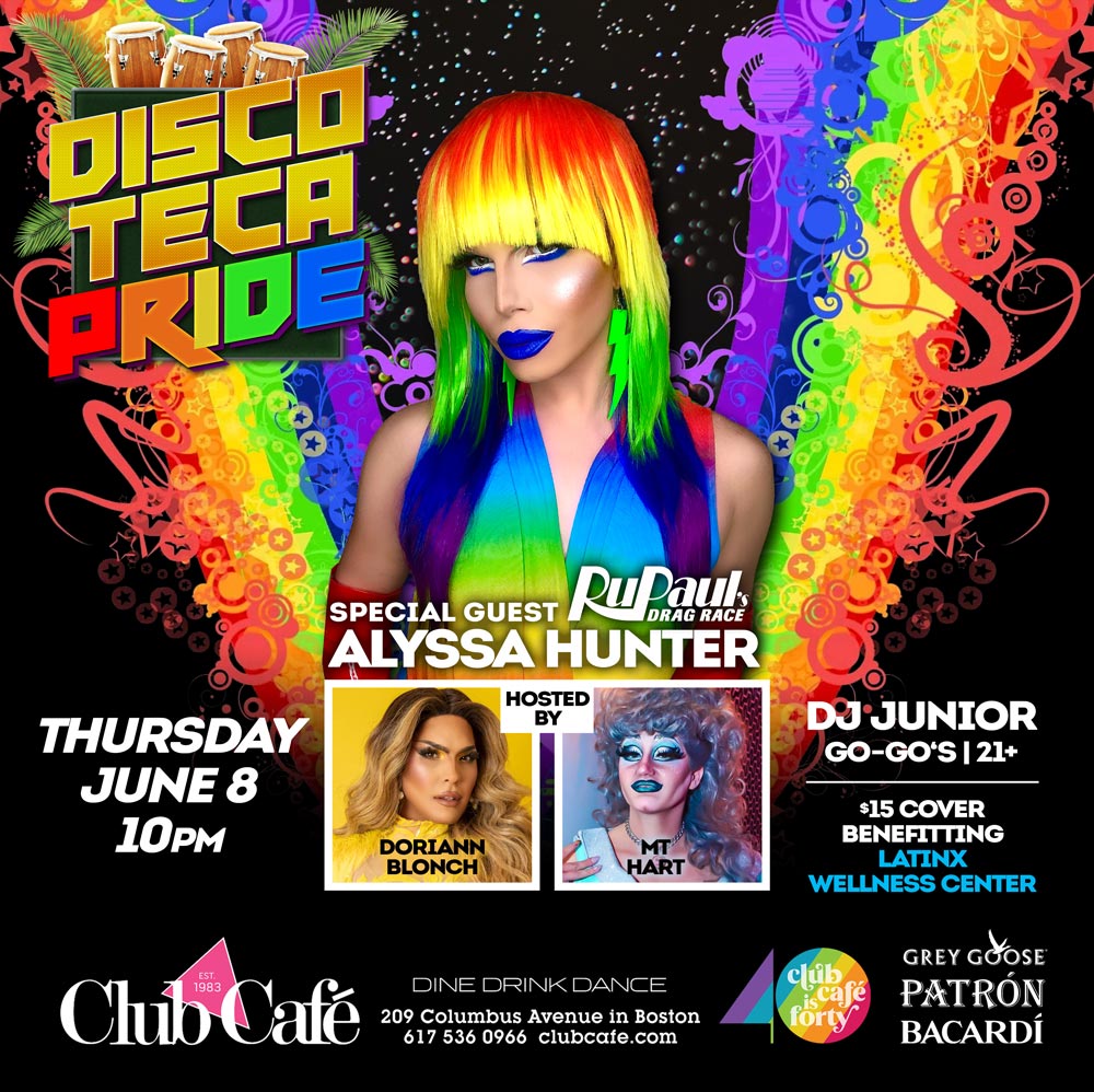 DISCOTECA PRIDE. – Music by DJ JUNIOR & Special guest ALYSSA HUNTER. $15 Cover! in support of LATINX WELLNESS CENTER. Go-Go’s 21+