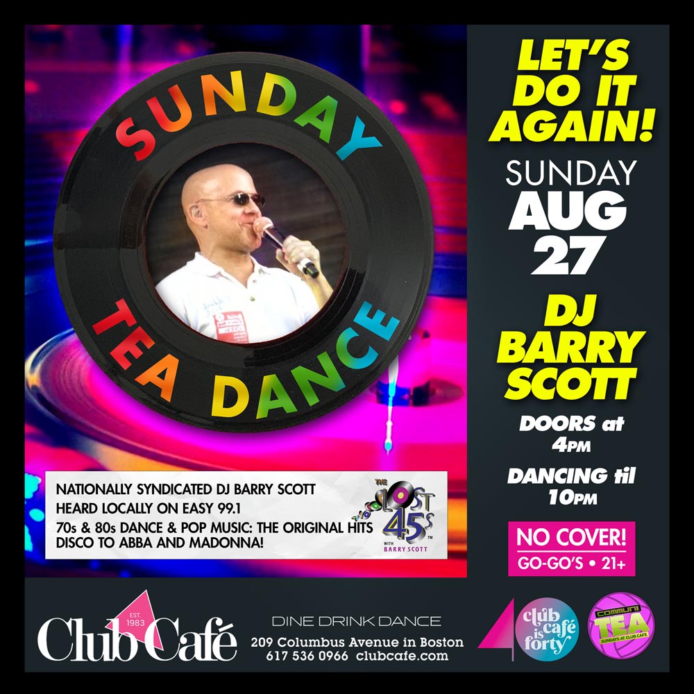 TEA DANCE with DJ Barry Scott – A Sunday Afternoon Dance Party, 4pm-10pm. Music by DJ BARRY SCOTT go-go’s – 21+