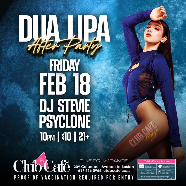 DUA LIPA AFTER PARTY – Join us at Club Café as we kick off the weekend with DJ STEVIE PSYCLONE.