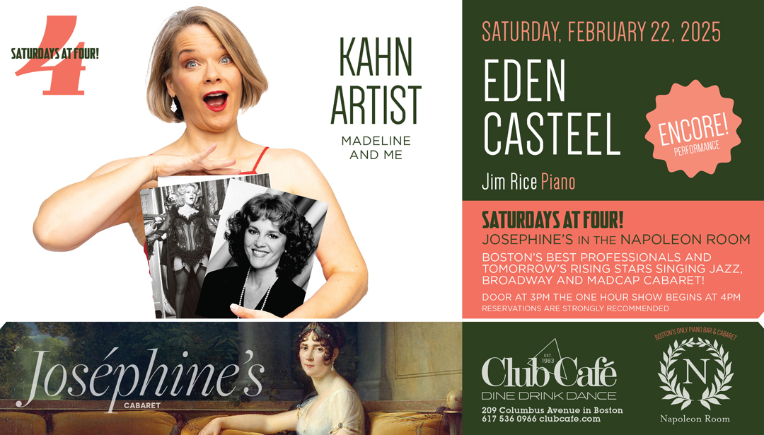 JOSEPHINE’S in the NAPOLEON ROOM – Boston’s best professionals and tomorrow’s rising stars singing JAZZ, BROADWAY & MADCAP CABARET! Doors open at 3pm and the one hour show begins at 4:00 pm. RESERVATIONS strongly recommended.