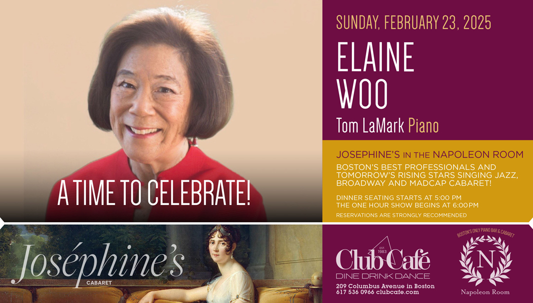 A TIME TO CELEBRATE! What?! on February 23?! Yes! Just think: You likely still have candy left from Valentine’s Day but the pieces you ate don’t show…yet. Spring is less than one short month away. The days are getting longer – even the biggest winter-phobes can see that! It’s Elaine’s son’s birthday- exactly! And anyway, who doesn’t need an excuse to celebrate? Come on down and join Elaine Woo and Tom Lamark and friends for a Good Time at the ultimate good place Club Café.