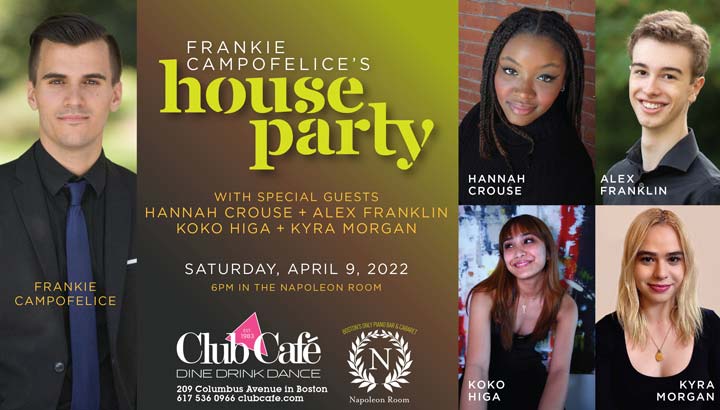 Frankie Campofelice hosts his first House Party with 4 of his favorite Berklee students: Hannah Crouse, Alex Franklin , Koko Higa, & Kyra Morgan. They will be accompanied by Andy Lantz.