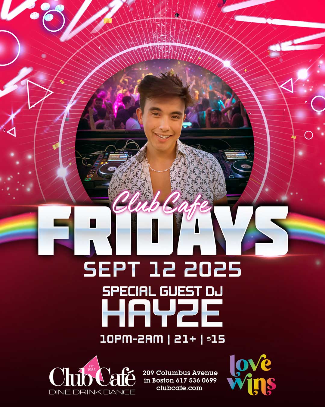 CLUB CAFE FRIDAYS with special guest DJ HAYZE – Join us at Club Café as we kick off the weekend. 21+ – $15 after 10pm