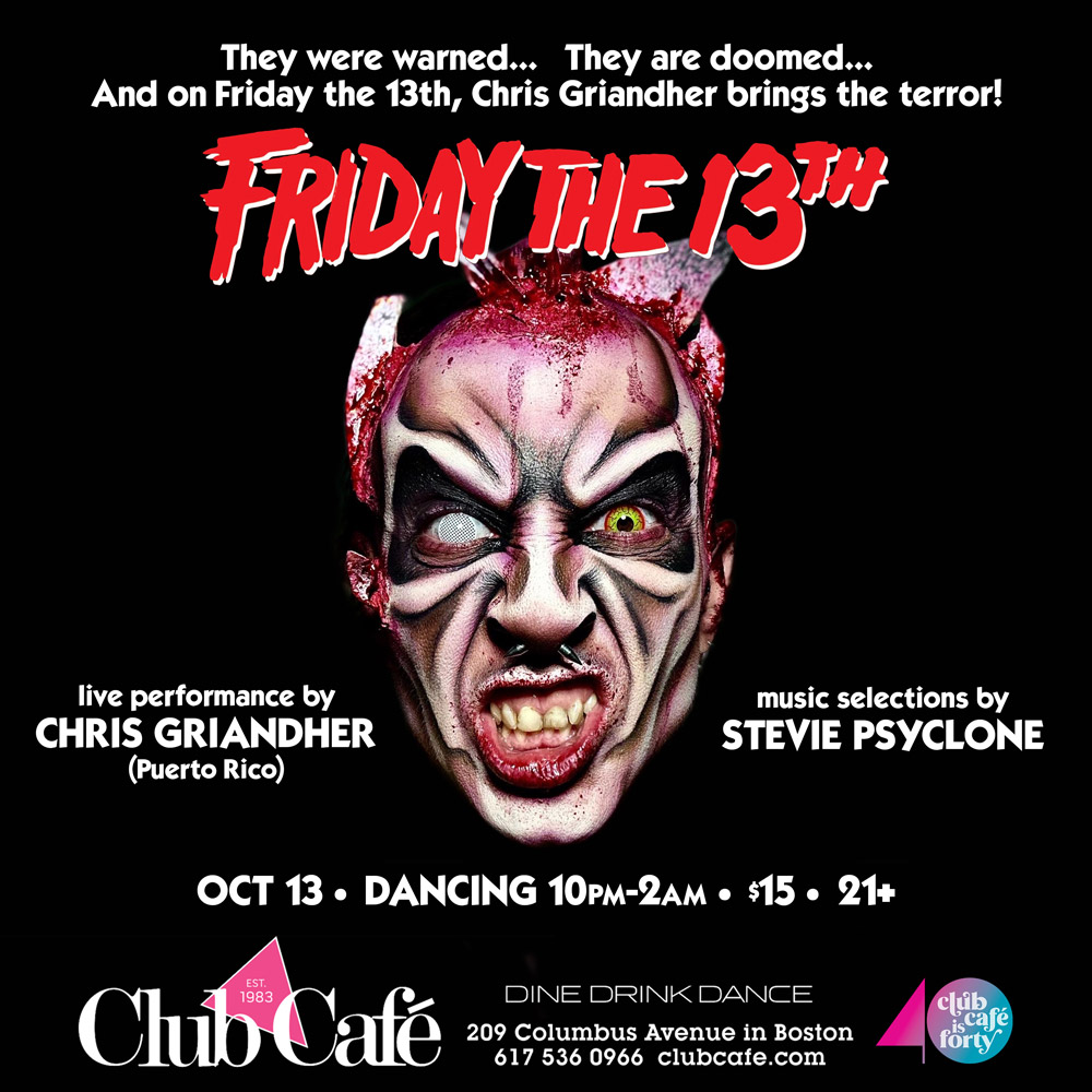 FRIDAY THE 13TH – Live performance by CHRIS GRIANDHER. Join us at Club Café as we kick off the weekend with DJ STEVIE PSYCLONE.