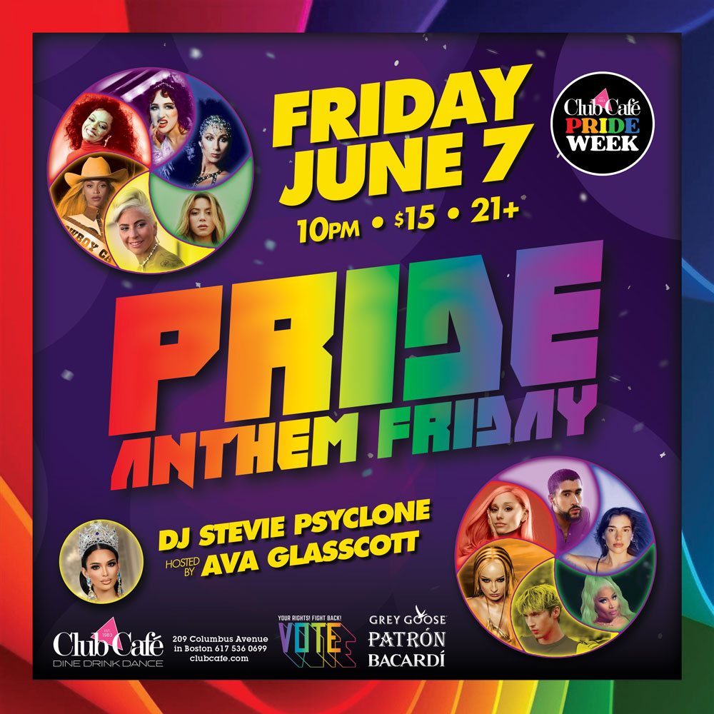PRIDE ANTHEM FRIDAY – Join us at Club Café as we kick off the PRIDE WEEKEND with DJ STEVIE PSYCLONE and hosted by AVA GLASCOTT.