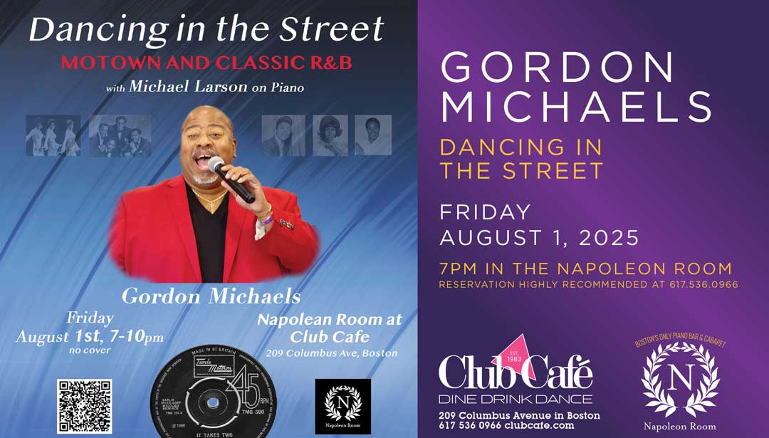 Dancing in the Street- Motown & Classic R&B – Yeah baby! Are you down with the funky tunes of the 50s, 60s and 70s? You know, that foot-stompin, hand-clappin rhythm and blues and classic soul music that makes you wanna jump outta your seat and get your groove on? Do you remember those cool cat doo-wop groups and dudes singing harmony on the corner like a bunch of crazy cats? Music that had you singing along and dancing in the streets like nobody’s watching, or like nobody’s judging you for your killer dance moves. If you like to snap your fingers, tap your feet and get your groove on, then come on out and belt out your best classic R&B or Motown tune, or just come out and make a total fool of yourself, we won’t judge. And if you’re not the next American Idol, no worries, just come out and enjoy a 45-minute mini concert featuring the charismatic, powerful baritone Gordon Michaels followed by the open mic portion of the night with the amazing Michael Larson on piano and the fabulous regular Napoleon Room singers. We’re talkin all Motown and Classic R&B, all night long, because who needs sleep when you can dance the night away? So don’t be a party pooper, make your reservations now, the room’s intimate and fills up faster than you can say I Want You Back!