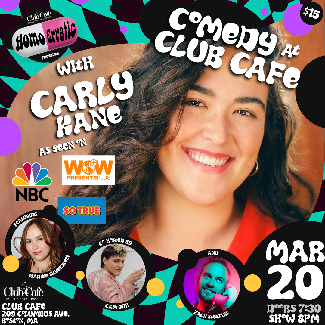 Zach Stewart and Cam Ohh host Carly Kane who has been featured on WOW Presents Plus and NBC Breakout Festival and the So True Podcast.