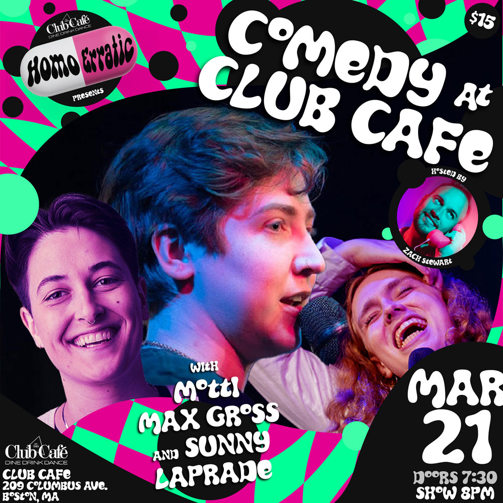 Zach Stewart hosts a lineup of hilarious and talented LGBTQIA+ comedians including three NYC comedians!