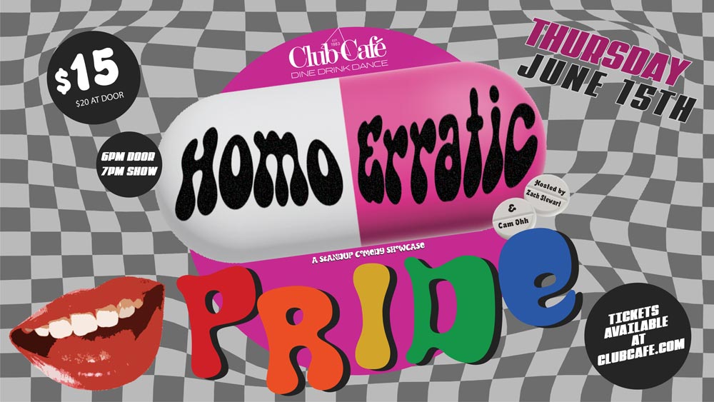 Cam Ohh and Zach Stewart host a lineup compromised of hilarious and talented comedians at Club Cafe. Come for a night of laughs or at least for the 20% food orders. And for more information about this show and upcoming shows, follow @homoerraticcomedy on Instagram