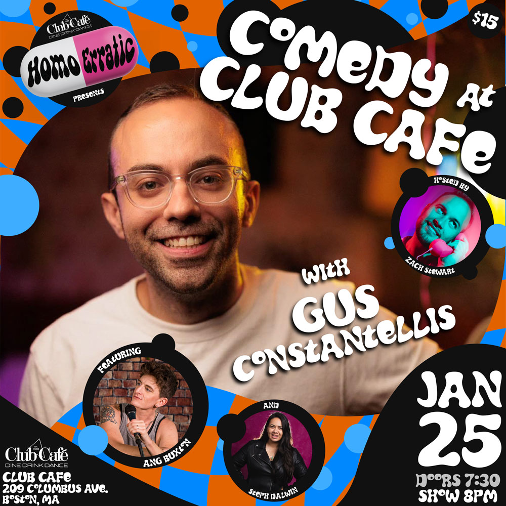 Zach Stewart hosts a hilarious line-up of the best queer comics in the area featuring NYC headliner and Tik Tok Star Gus Constantellis