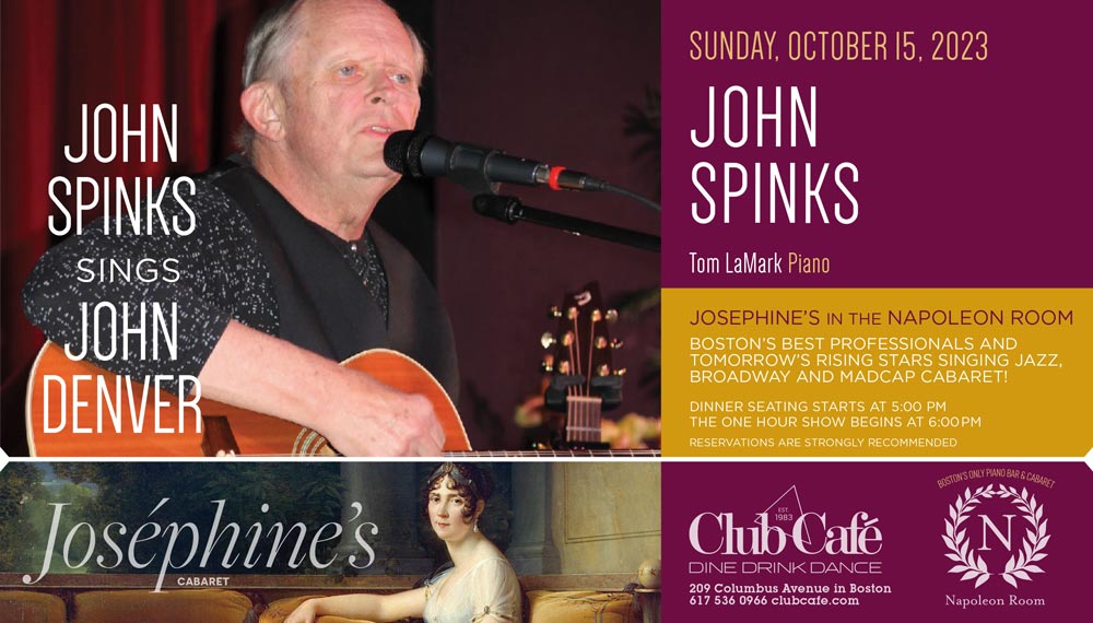 JOSEPHINE’S in the NAPOLEON ROOM – Boston’s best professionals and tomorrow’s rising stars singing JAZZ, BROADWAY & MADCAP CABARET! Dinner seating starts at 5:00 pm and the one hour show begins at 6:00 pm. RESERVATIONS strongly recommended.