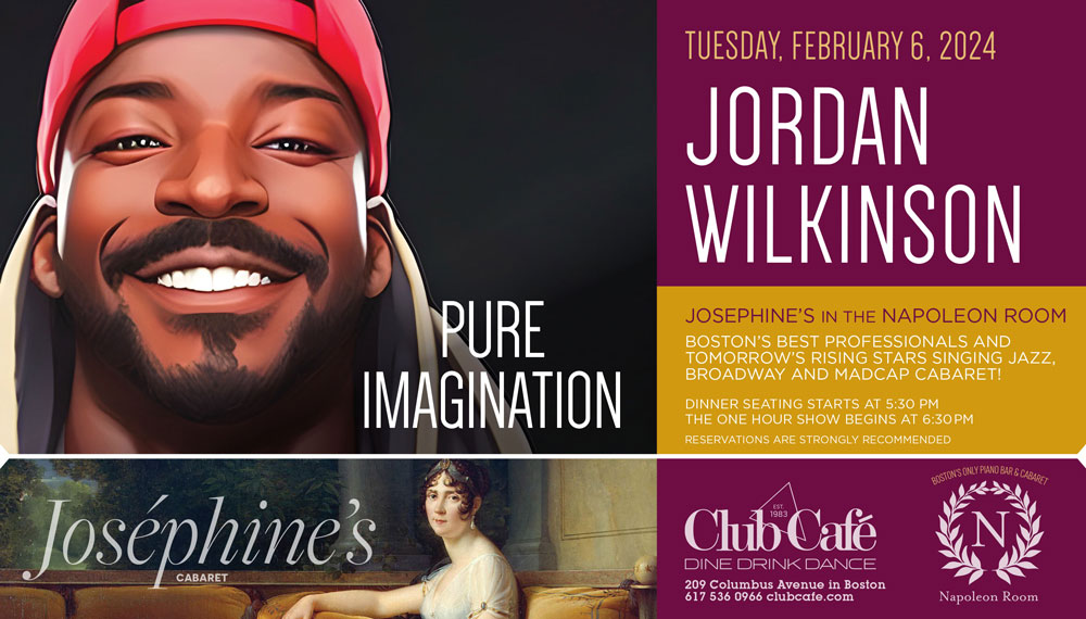 JOSEPHINE’S in the NAPOLEON ROOM – Boston’s best professionals and tomorrow’s rising stars singing JAZZ, BROADWAY & MADCAP CABARET! Dinner seating starts at 5:30 pm and the one hour show begins at 6:30 pm. RESERVATIONS strongly recommended.
