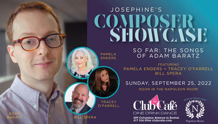 Josephine’s is proud to introduce ADAM BARATZ in our first Composer Showcase. Adams’ songs speak to the complexities of conflict and how we deal with it – do we move away from or move towards resolution? Napoleon favorites Pamela Enders, Tracey O’Farrell and Bill Spera bring Adam’s songs to life in this new and thought filled cabaret.