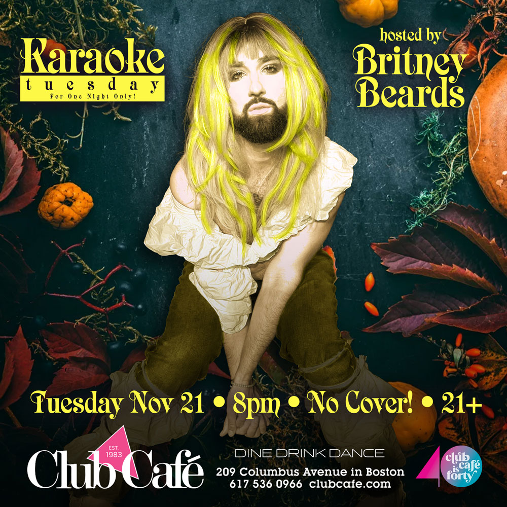 KARAOKE TUESDAY Hosted by BRITNEY BEARDS – @itsbritneybeards it is a big hit! Karaoke starts at 8 PM, so get here early! On Tuesday this week for one night only!