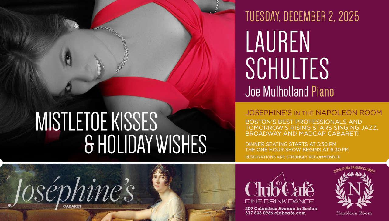 MISTLETOE KISSES & HOLIDAY WISHES Lauren Schultes is a Boston-based soprano recognized for her brilliant tone and captivating stage presence. From intimate cabarets to world premiere musicals and comedy festivals, she has performed across the U.S. and Europe for nearly two decades. Current projects include “My Favorite Things: A Julie Andrews Tribute” (Napoleon Room debut) and “A Tall Girl’s Lament” (Napoleon Room, NYC’s SoloCom Festival, The PIT Loft NYC, and Chicago’s Playground Theater). Both original cabarets will continue to tour New England and beyond in 2026.