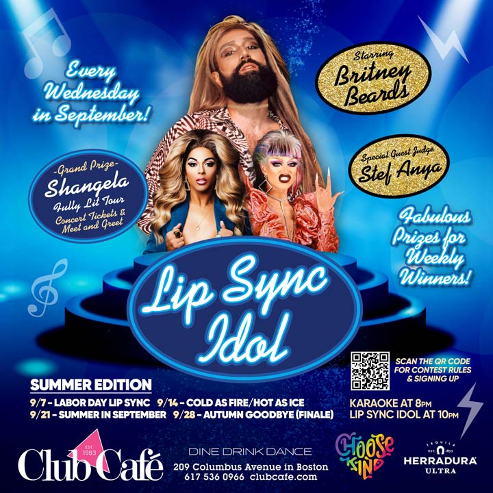 BRITNEY BEARDS Club Café LIP SYNC IDOL starting September 7th. Every Wednesday in September in the middle(10pm) of Karaoke Wednesdays (8pm-12am) and as always, Karaoke will resume after Lip Sync Idol. Grand prize is Shangela Fully Lit Tour Concert Tickets & Meet and Greet!!! For full rules check out https://www.clubcafe.com/lip-sync-rules/