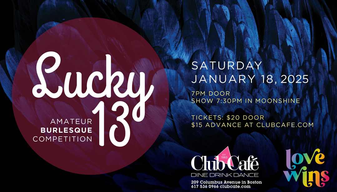 Since 2010, Lucky 13 Amateur Burlesque Competition has paved the way for new burlesque performers in Greater Boston. The winner is chosen by 3 professional burlesque judges – their scores are combined with audience votes. Come cheer on newbie burlesquers and cast your vote for your favorite burlesquer! All genders, sizes and genres welcome. This event is 21+