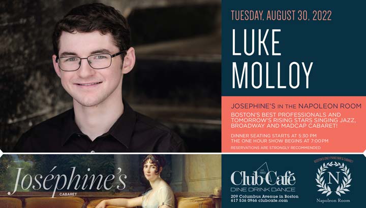 JOSEPHINE’S in the NAPOLEON ROOM – Boston’s best professionals and tomorrow’s rising stars singing JAZZ, BROADWAY & MADCAP CABARET! Dinner seating starts at 5:30 pm and the one hour show begins at 7:00 pm. RESERVATIONS strongly recommended.