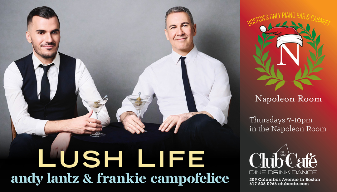 Andy Lantz delights audiences with classic jazz standards from the 20s to the 60s at this sophisticated monthly event. Frankie Campofelice – A native from Buffalo New York, singer and vocal pedagogue. Classically trained, he has had the pleasure to perform in various other musical styles in numerous locations within the metro Boston area, including Emmanuelle and Old South Church, Ryles Jazz Club and the Napoleon Room here at Club Café.