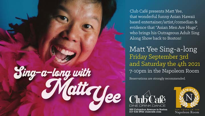 International star entertainer and recording artist, MATT YEE comes to the Napoleon Room on September 3 & 4, 2021. Few artists can combine the flash of Liberace with the warmth of a Hawaiian Luau, but then again few artists are MATT YEE. His standing room only Sing Along Shows have become legendary with fans watching 6 lines deep, and others waiting up the stairs to catch his show and maybe grab a seat. Matt has emceed and performed at huge Pride Festivals around the country including Long Beach, LA and San Francisco. He has also been a part of The National Queer Arts Festival, The California Men’s Gathering, and The United States of Asian America.
