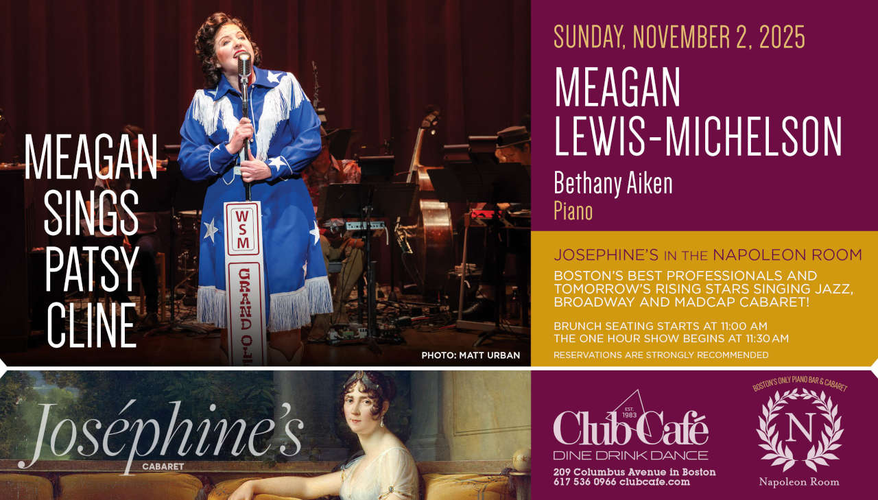 JOSEPHINE’S in the NAPOLEON ROOM – Boston’s best professionals and tomorrow’s rising stars singing JAZZ, BROADWAY & MADCAP CABARET! Brunch seating starts at 11:00 am and the one hour show begins at 11:30 pm. RESERVATIONS strongly recommended.