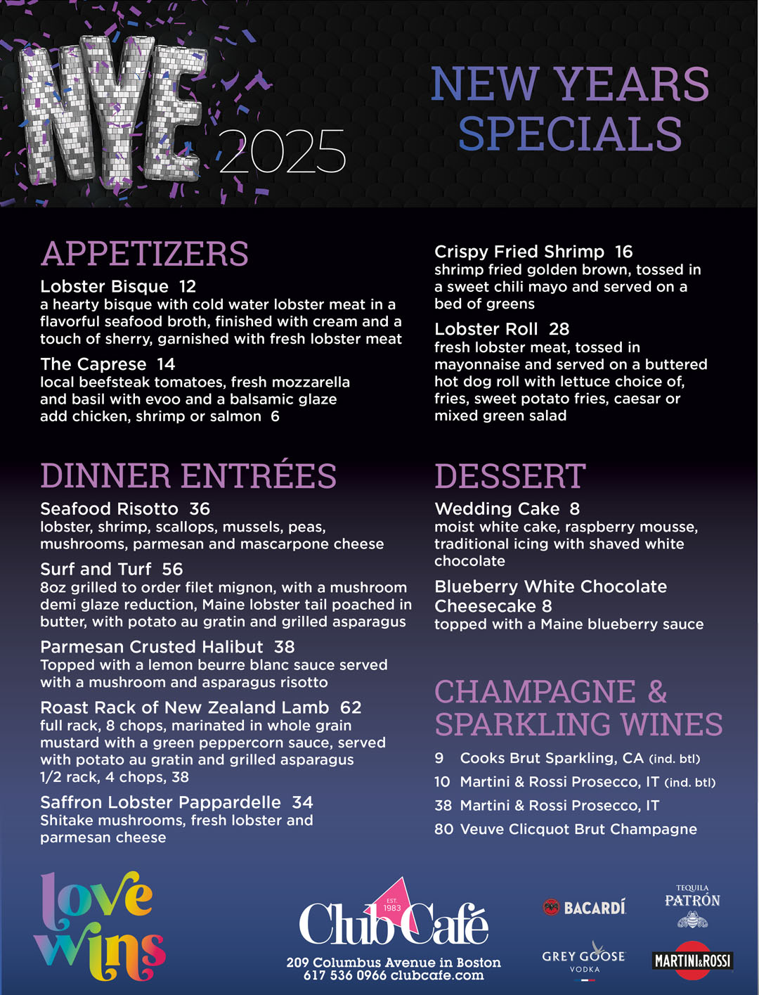 New Years Dinner Specials: