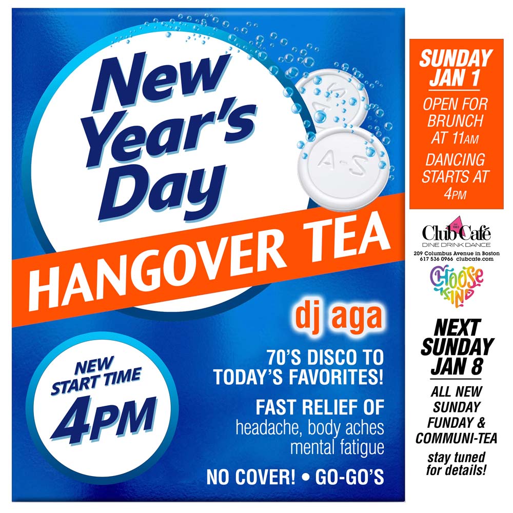 NEW YEAR’S DAY HANGOVER TEA DANCE! DJ AGA – NO COVER!