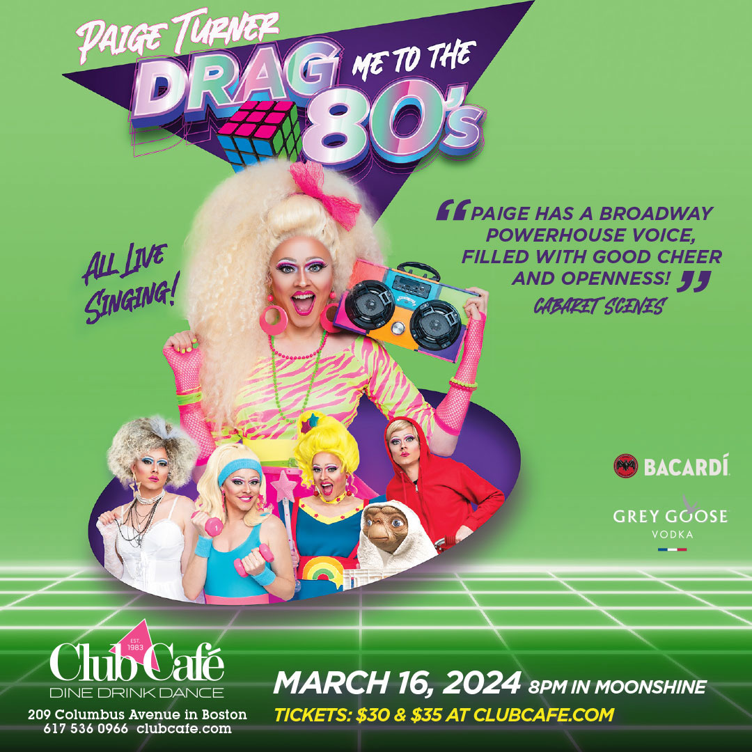 NYC/Provincetown Drag star PAIGE TURNER returns to the Club Café with her new show DRAG ME TO THE 80’S
