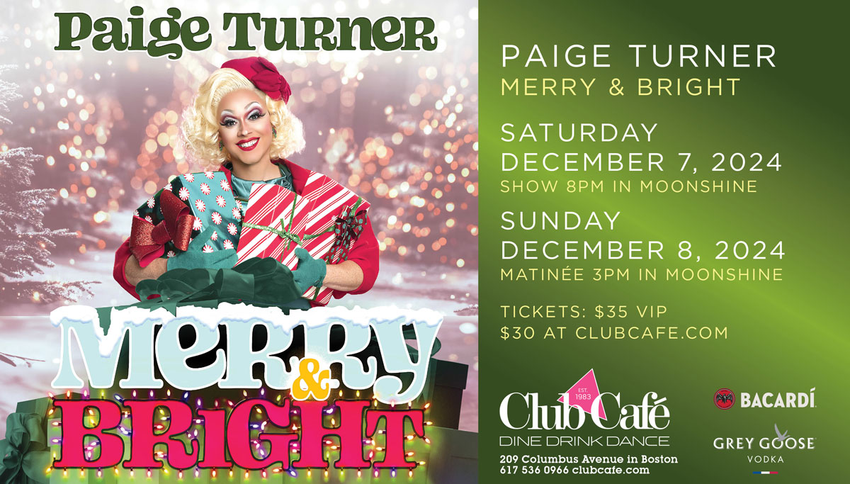 NYC/Provincetown Drag Queen PAIGE TURNER returns to Club Café Boston in her spectacular new Christmas show, where she keeps things Merry and Bright with glitter, glamour, and a whole lot of holiday cheer!