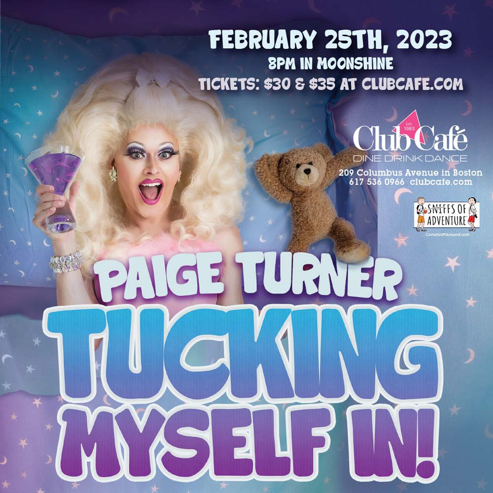 Get ready for TUCKING MYSELF IN! Showbiz Spitfire PAIGE TURNER returns to Club Café with her all-LIVE-SUNG Slumber Party! NYC /Ptown’s tawdry blonde bombshell invites you into her boudoir for an evening of mayhem and campy foolishness! TUCKING MYSELF IN! features ridiculous parodies and songs from HAIRSPRAY, TAYLOR SWIFT, MUPPETS, CARLY RAE JEPSEN and more! So snuggle up, put on your PJ’s, and get ready for this DRAG-tastic extravaganza!