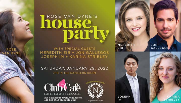 Rose returns to kick off the New Year with even more of her favorite singers to blow the roof off the Napoleon Room. Meredith Eib, Jon Gallegos, Joseph Im, and Karina Stribley are powerhouse vocalists – each one better than the first. As always, Rose opens up the mic to everyone in the room in her first house party of the season!