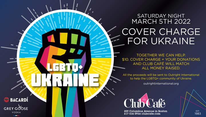 COVER CHARGE FOR UKRAINE – $10 cover charge + your donations and Club Café will match all money raised. Music by BEGBICK, Dancing 10PM