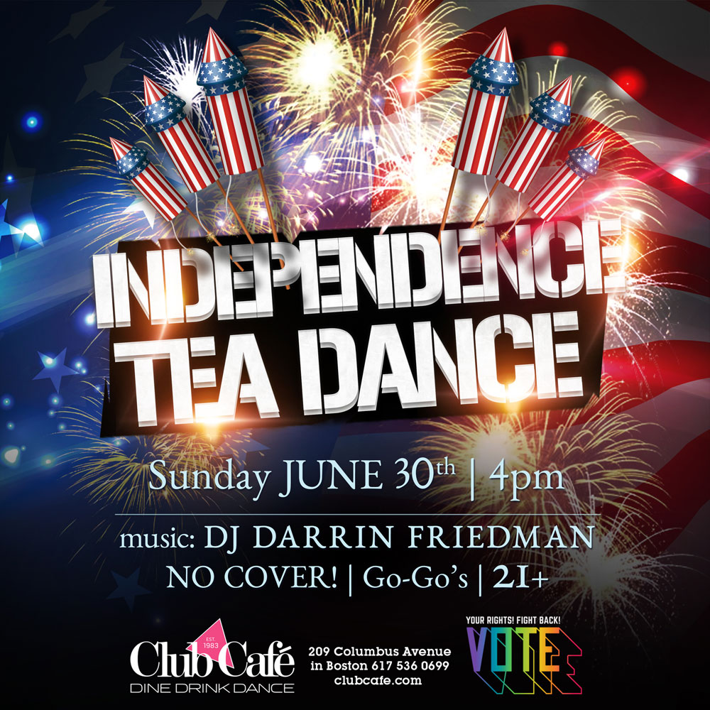 INDEPENDENCE TEA DANCE with DJ DARRIN FRIEDMAN – A Sunday Afternoon Dance Party, 4pm-10pm. No Cover go-go’s – 21+