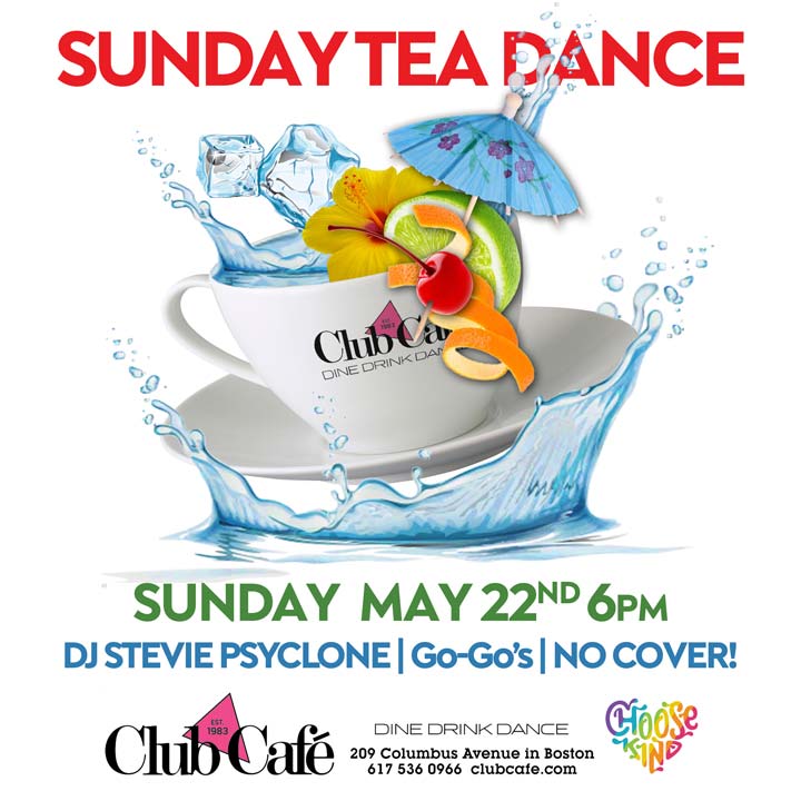 Home Events Sunday Tea Dance – DJ STEVIE PSYCLONE Sunday Tea Dance – DJ STEVIE PSYCLONE reservationsDine With Us. SUNDAY TEA DANCE! DJ STEVIE PSYCLONE – NO COVER! Date May 22 2022 Expired! Time 6:00 pm - 10:00 pm Cost no cover Location Moonshine Room 209 Columbus Avenue, Boston, MA 02116 Website https://www.clubcafe.com/ Category Nightclub Feature Weekly Events