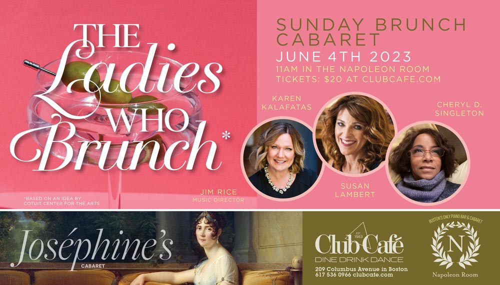 The Ladies Who Brunch at Club Café is Boston’s newest Sunday divertissement. Come and indulge yourself in a feast for your senses with renowned artists Karen Rives Kalafatas, Susan Lambert and Cheryl B Singleton.