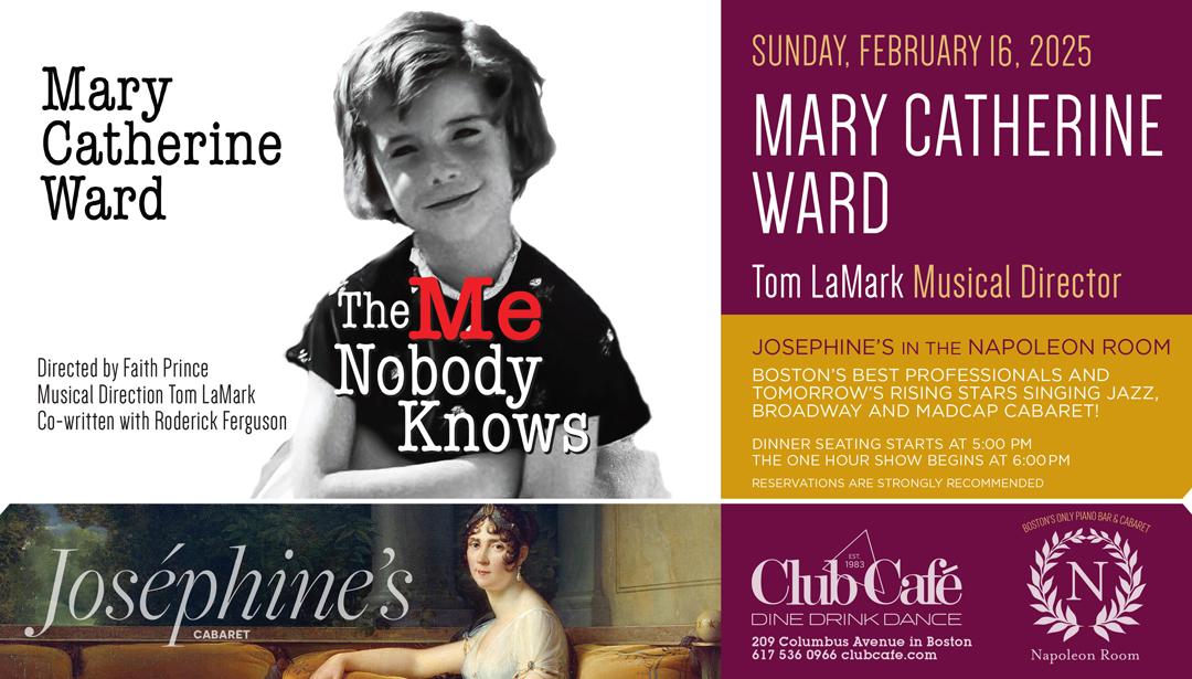 JOSEPHINE’S in the NAPOLEON ROOM – Boston’s best professionals and tomorrow’s rising stars singing JAZZ, BROADWAY & MADCAP CABARET! Dinner seating starts at 5:00 pm and the one hour show begins at 6:00 pm. RESERVATIONS strongly recommended.