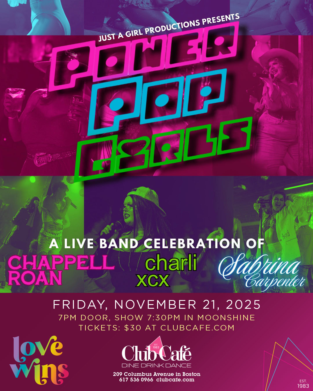 Just a Girl Productions is BACK in Boston and turning up the volume and the glitter with POWER POP GIRLS — a high-energy, live band tribute show celebrating the music of Chappell Roan, Sabrina Carpenter, and Charli XCX. The show runs for One Night Only, and will have you begging for more.