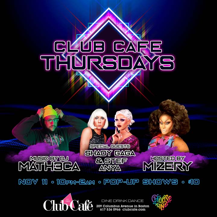WEEKLY DANCE PARTY ON THURSDAYS! Music by Math3ca. Special Guests SHADY GAGA & STEF ANYA. Hosted by MIZERY. Pop-Up shows, NO COVER BEFORE 10PM.
